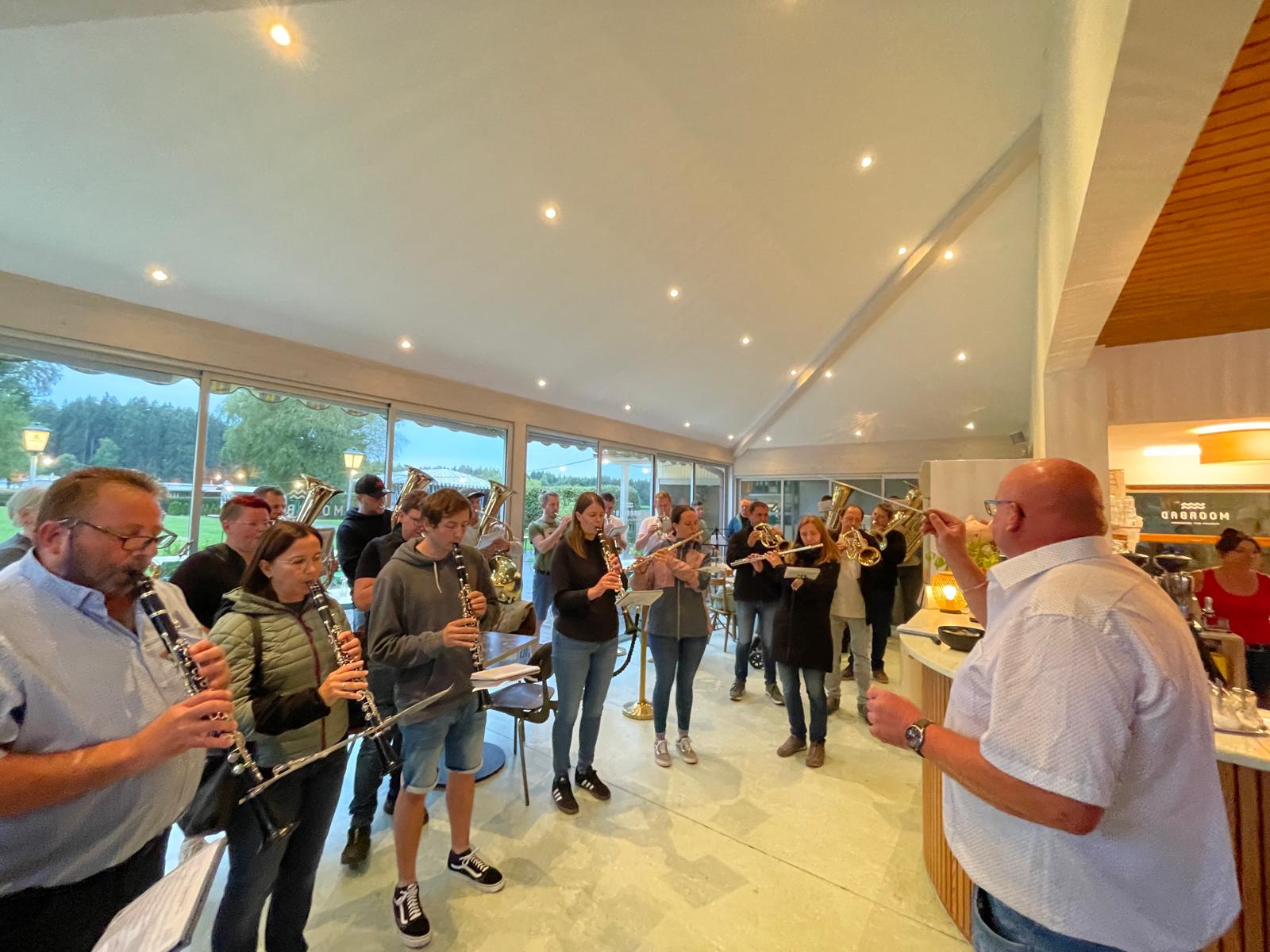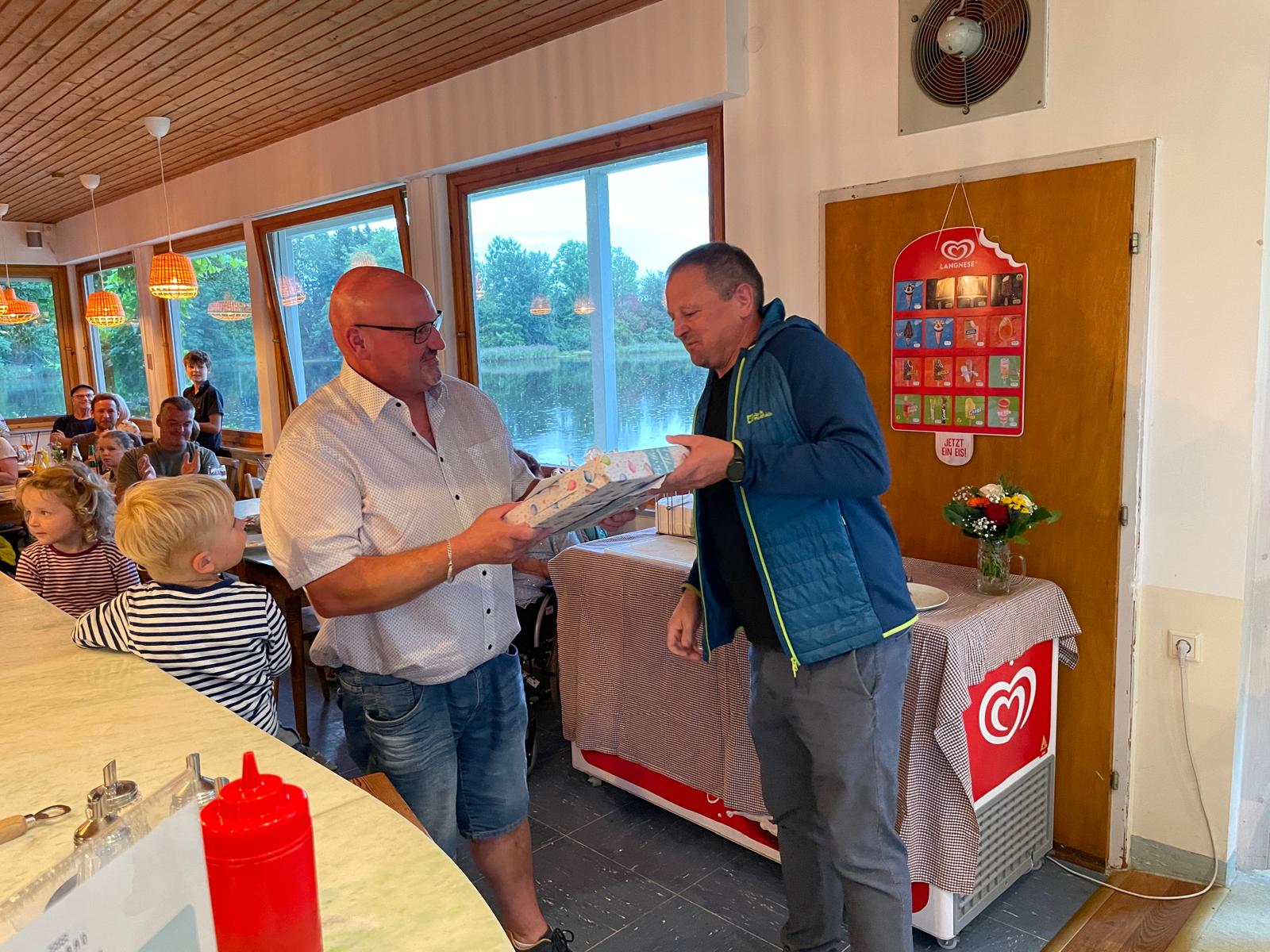 Vorstand Alfred Sipple erzählte kurz über Becks Laufbahn in der Musikkapelle und bedankte sich für seine Einsätze in der Vorstandschaft und die vielen Arbeitseinsätze. Anschließend überreichte er ihm, mit den besten Glückwünschen der gesamten Kapelle, das Geschenk und eine Karte. Danach durften wir es uns gemütlich machen und eine leckere Currywurst mit Pommes genießen.