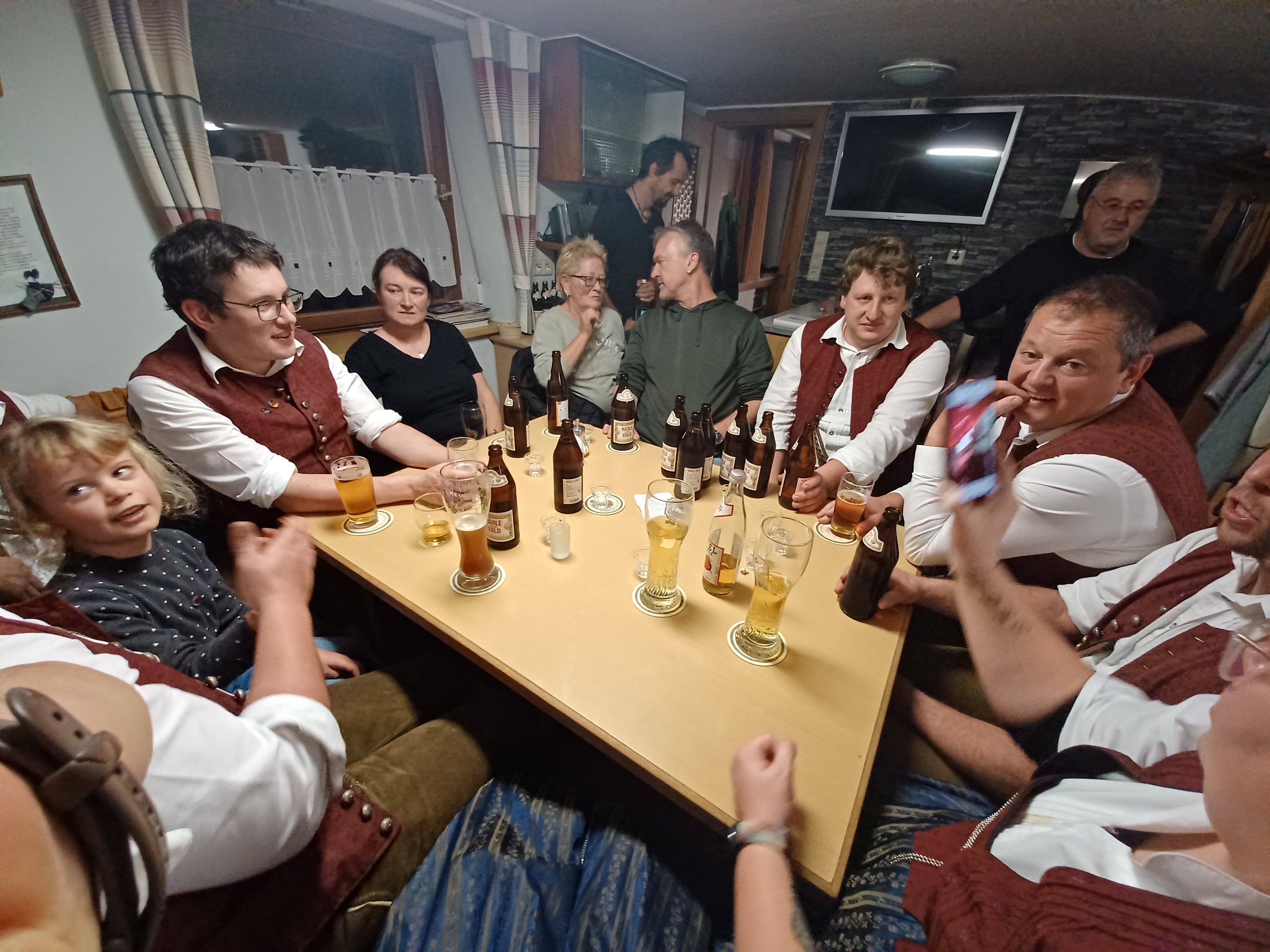 Doch vor wir zur Reiterprozession gingen, war noch eine Probe für das anstehende Konzert angesagt. Von 9 bis 12 Uhr probten wir im Proberaum und ließen uns anschließend eine leckere Pizza schmecken. Dann fuhren wir, unter Zeitdruck, nach Merazhofen, wo um 13 Uhr die Prozession nach Liezenhofen losging. Gemeinsam mit ca. 80 Reitern, dem Musikverein Merazhofen und Dekan Kurt Susak marschierten wir nach Liezenhofen. Dort gestalteten wir, abwechselnd mit den Merazhofern, den Gottesdienst. Im Anschluss trafen sich einige von uns im Gasthaus „Bad“.